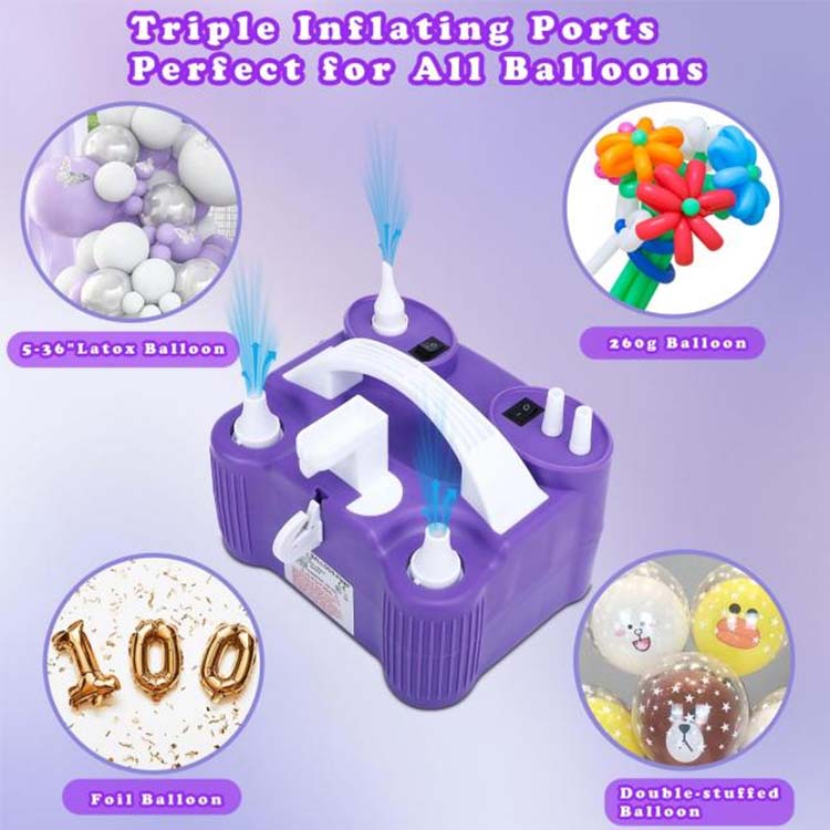 Elektriniame baliono siurblyje yra 5 profesionalūs infliacijos purkštukai, pratęsimo žarna, dvigubos rutulinės adatos ir rutulinės infliacijos žarnos, kuri gali lengvai susidoroti su didele įranga, pavyzdžiui, pripučiami čiužiniai, plaukimo žiedai, jogos rutuliai, pripučiamos valtys ir gali tiksliai išpūsti sportinius rutulius, tokius kaip krepšiniai, futbolas ir tinkliniai. Specialus balionų pjaustytuvas ir išmanusis mazgelis yra specialiai įtraukti, todėl balionų pjaustymui ir mazgams galima atlikti vienu žingsniu. Net naujokai gali greitai baigti profesionalaus lygio balionų formavimą.
