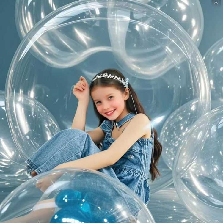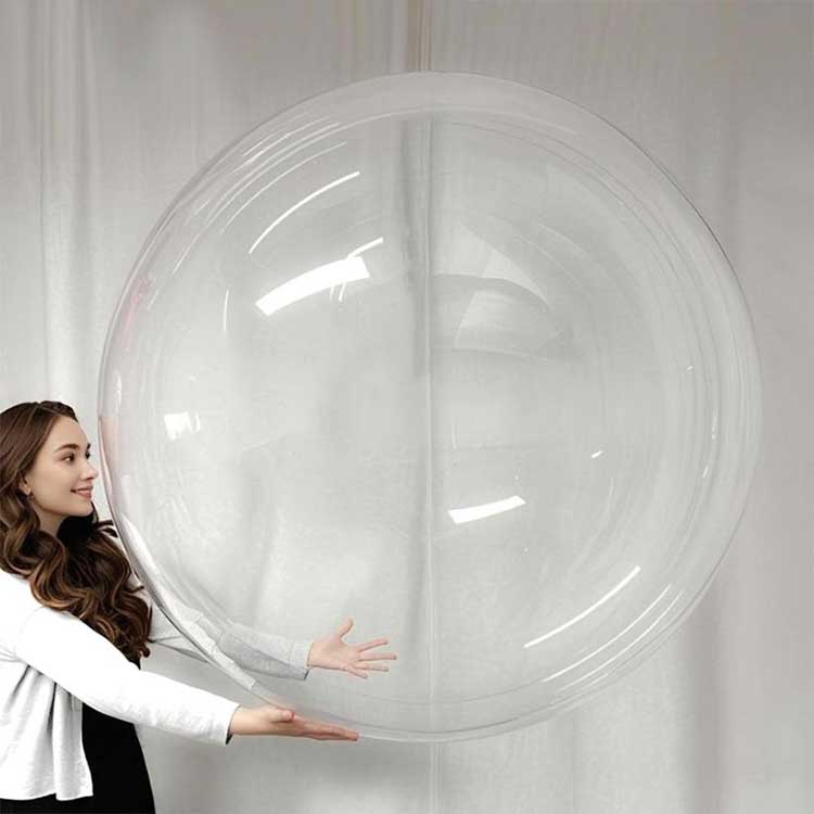 Šie 48 colių apvalūs skaidrūs Bobo balionai yra pagaminti iš TPU medžiagos, pasižyminčios puikiu tvirtumu ir ilgaamžiškumu. Po pripūtimo paviršiaus įtempimas yra ypač tolygus, neleidžiantis išsipūtimui ir plyšimui, be to, jis lengvai atlaiko nedidelius smūgius. Šis balionas neturi įprastuose balionuose esančio plastiko kvapo. Net uždarose erdvėse nereikia jaudintis dėl aplinkosaugos problemų. Permatoma 48 colių versija yra sandėlyje ir paruošta nedelsiant išsiųsti. Taip pat galime suorganizuoti 1000 vienetų užsakymus kitoms spalvoms. Tiesiog priveržkite sandariklį po pripūtimo; nereikia papildomos juostos. Balionai gali išlaikyti visą savo formą daugiau nei du mėnesius, sumažinant priežiūros išlaidas renginių metu. Mes išbandėme pririštą balioną šešis mėnesius ir jis liko nepažeistas, o tai liudija, kad jis puikiai veikia ir kad šis produktas yra labai vertinamas.