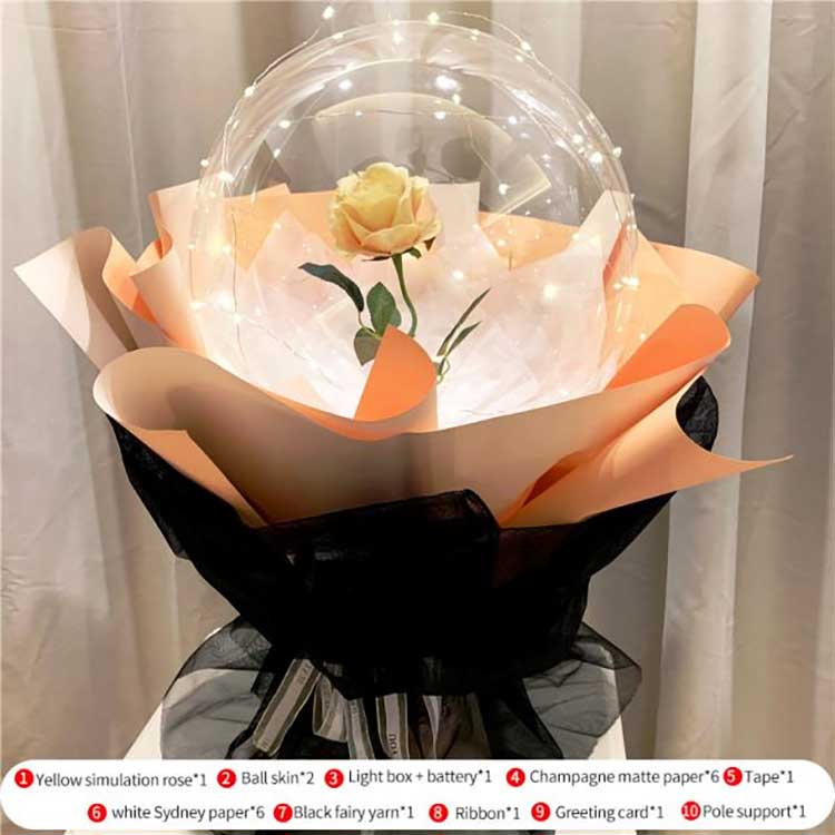 BOBO balloons can maintain their shape for about a month after inflation. The artificial roses are durable and can be used as furniture decorations. The string lights are detachable and can be used for room lighting. Nesvarbu, ar turite fizinę gėlių parduotuvę, dovanų parduotuvę ar juvelyrinių dirbinių parduotuvę, ar net prekystalį parke ar žaidimų aikštelėje, BOBO balionų rožių rinkiniai yra puikūs geriausiai parduodami produktai. Šviečiančios rožės yra labai patrauklios klientams, siūlo puikų kainos ir kokybės santykį, suteikia daug gražių prisiminimų ir emocinės vertės, todėl jos yra jūsų geriausias pasirinkimas.