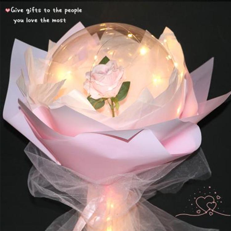 MūsųBobo rožių balionų rinkinysPasirinkite vyniojamojo popieriaus kiekį ir vyniojamojo popieriaus spalvą, verpalų spalvą ir kiekį bei gėlių spalvą pagal klientų poreikius.