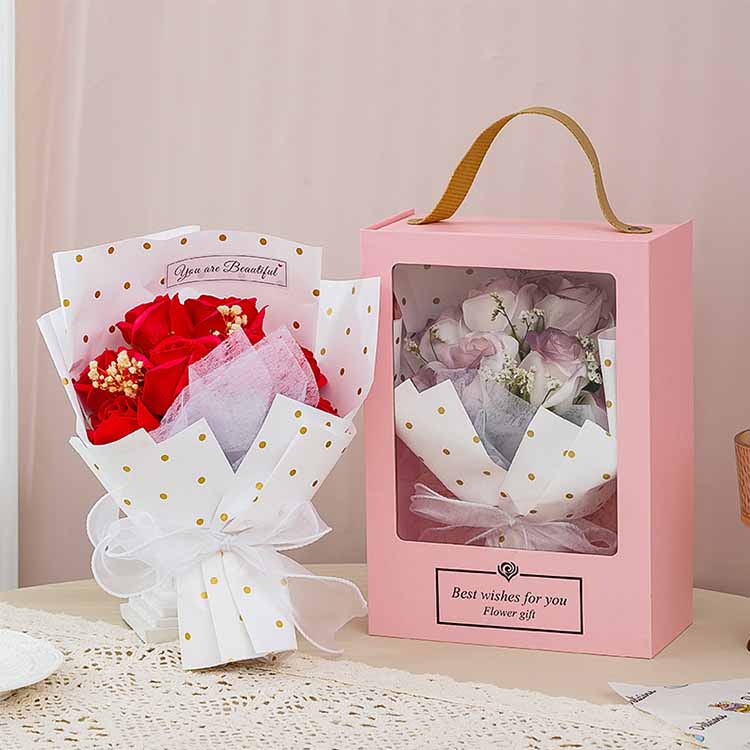 Puokštės dovanų dėžutė turi karšto štampavimo, skaidrių kraštelių ir reljefinių medžiagų, todėl gėlės gali būti sluoksniuotos ir aukščiausios klasės. Naudojamos kartonas, laminavimas ir aplinkai nekenksmingos medžiagos, kurios yra atsparios slėgiui ir deformacijai. Bet kurio festivalio metu klientai gali įsigyti pagal savo poreikius, o tai yra labai ekonomiška.
