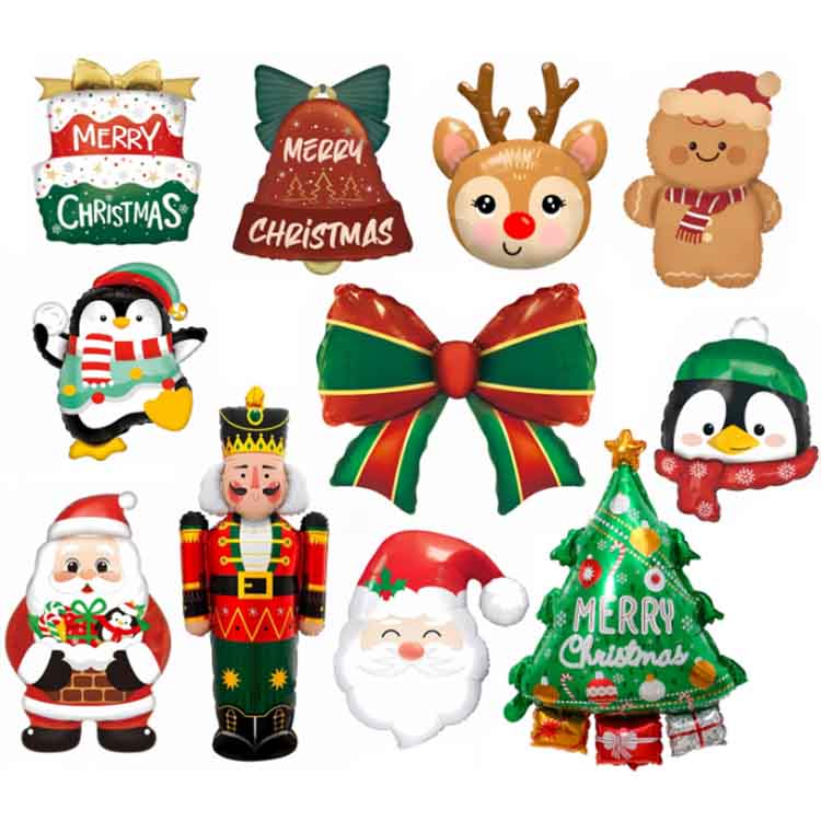 Kalėdiniai aliuminio folijos balionai yra specialiai sukurti artėjančiam Kalėdų sezonui. Gamykloje pagaminti iš aukštos kokybės aliuminio folijos, jie turi metalinę tekstūrą ir yra lankstūs. Išpūstos jos sukuria erdvinę formą, atsparios lūžimui ir nesandarumui ir ilgą laiką išlaiko pilnumą.