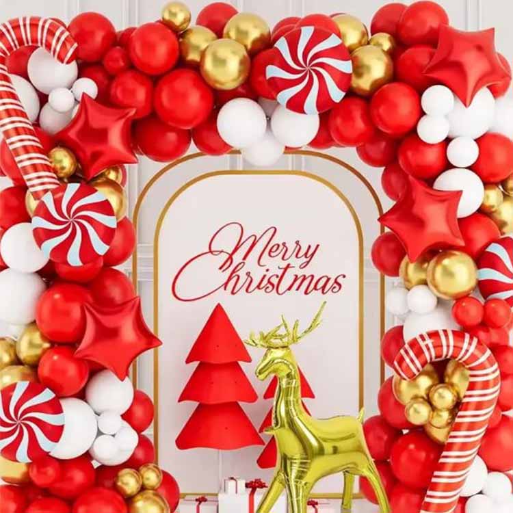 Kalėdų balionų arkos rinkinys – tai šventiniai balionai, kuriuos priderino mūsų stilistai. Juose dažniausiai būna įvairių medžiagų, tipų, spalvų ir dydžių balionai. Derantys elementai gali būti aliuminio folijos balionai, latekso balionai arba BOBO balionai. Ir prie jų derantys priedai, tokie kaip balionų grandinėlės, klijų taškai, kabliukai ir t.t. Jis gali būti naudojamas vidaus ar lauko dekoracijoms, kurios padės greitai sukurti stiprią Kalėdų atmosferą. Tinka šeimos susibūrimams, verslo renginiams ar šventinėms šventėms.