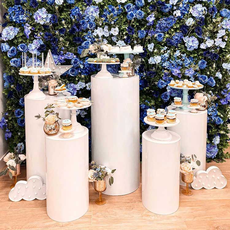 Cilindrinio pagrindo desertinis stalas tarnauja ir kaip indas, ir kaip papuošalas. Paprastai jie būna įvairių derinių: 3 dalių deriniai, 5 dalių deriniai, 7 dalių deriniai ir pan. Dažniausias derinys yra penkios dalys. Nepriklausomi įvairių dydžių cilindriniai vamzdžiai gali būti lanksčiai išdėstyti ir jie yra svarbi scenos dalis. Tuo pačiu metu mes taip pat siūlome pritaikymą pagal dydį ir formą. Be to, jie dera prie jūsų vakarėlio dekoracijų.