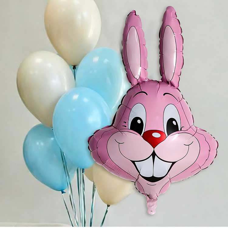 Šio Velykinio triušio folijos baliono išmatavimai nepripūsti yra 53 cm x 83 cm, o pripūsti – 43 cm x 70 cm. Pagaminti iš sutirštinto nailono, balionai pasižymi ryškiu spausdinimu ir yra keturių spalvų. Kiekvienoje pakuotėje yra 50 balionų. Šiuos balionus galima užpildyti heliu ir plūduriuoti ore.
