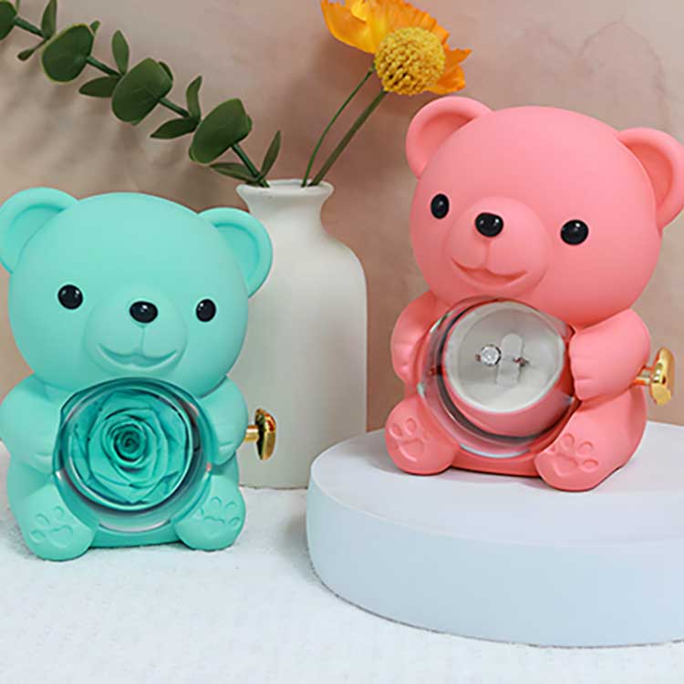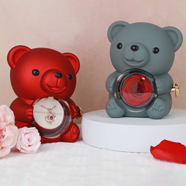 Ši Hug Bear Rose papuošalų dėžutė skirta eksponuoti ant stalo, knygų lentynos ar naktinio staliuko. Labiausiai akį traukiantis bruožas yra išsaugota rožė centre. Atidarius rožę, atsiranda skyrius papuošalams, žiedams ar atminimo dovanėlėms laikyti.