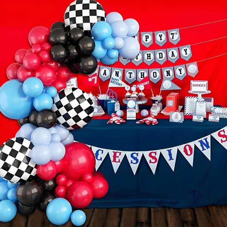 Lenktynių temos balionų arkos dekoravimo rinkinys yra dekoratyvinis sprendimas, specialiai sukurtas lenktynių tematikos vakarėliams, renginiams ir gimtadieniams. Šis produktas yra orientuotas į automobilių lenktynių temą. Pridedant juodos, sidabrinės, mėlynos ir raudonos spalvos latekso balionus, automobilių modelius ir lenktynių aksesuarus, galutinis rezultatas suformuoja arkos formą kaip dekoraciją, sukuriančią aistringą ir linksmą atmosferą renginio vietoje.