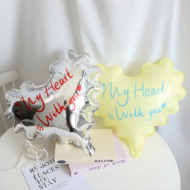1. Unikalus dizainas: banguoti kraštai suteikia kūrybiškumo klasikinei širdies formai, todėl ji išsiskiria iš standartinio baliono.